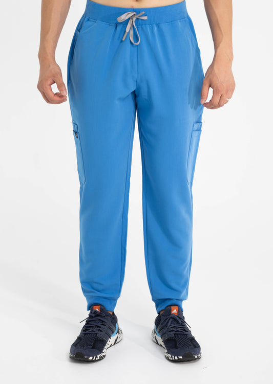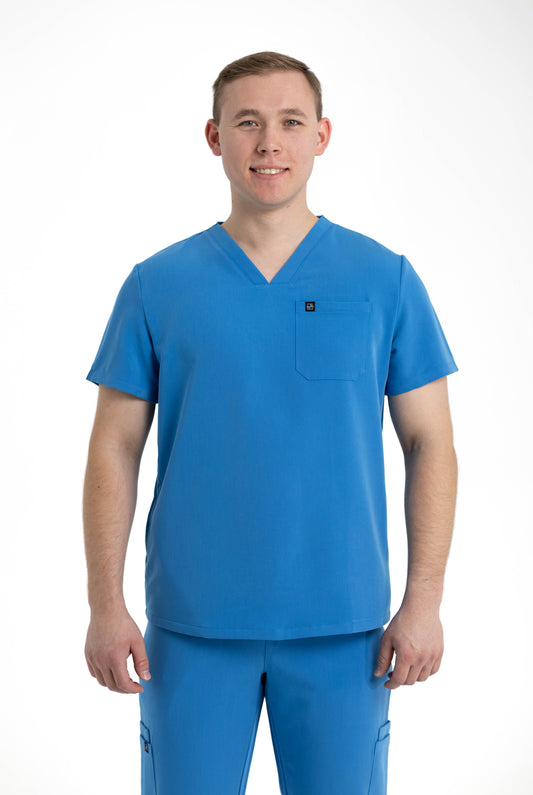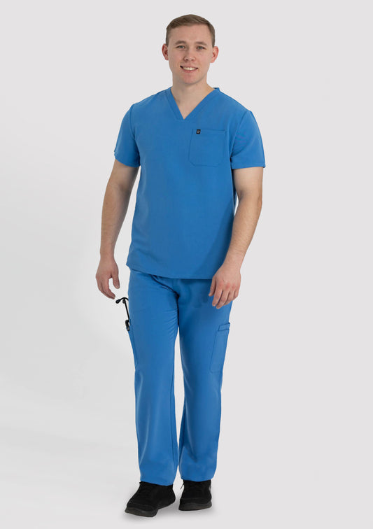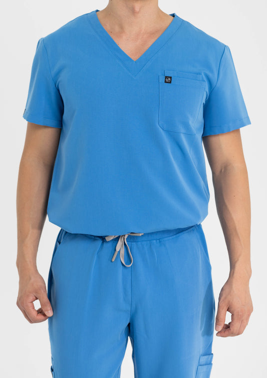 Men's V Neck Scrub top With Chest Pockets in Azure Blue