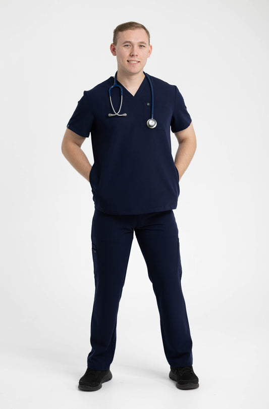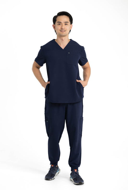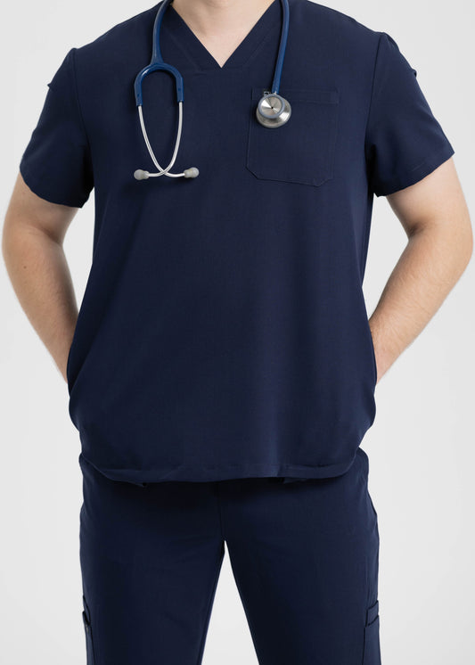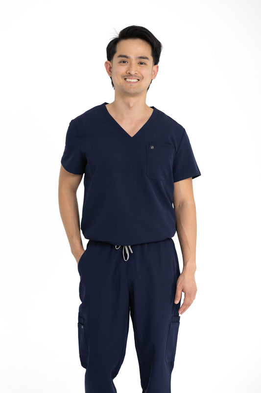 Men's V Neck Scrub top With Chest Pockets in Navy Blue